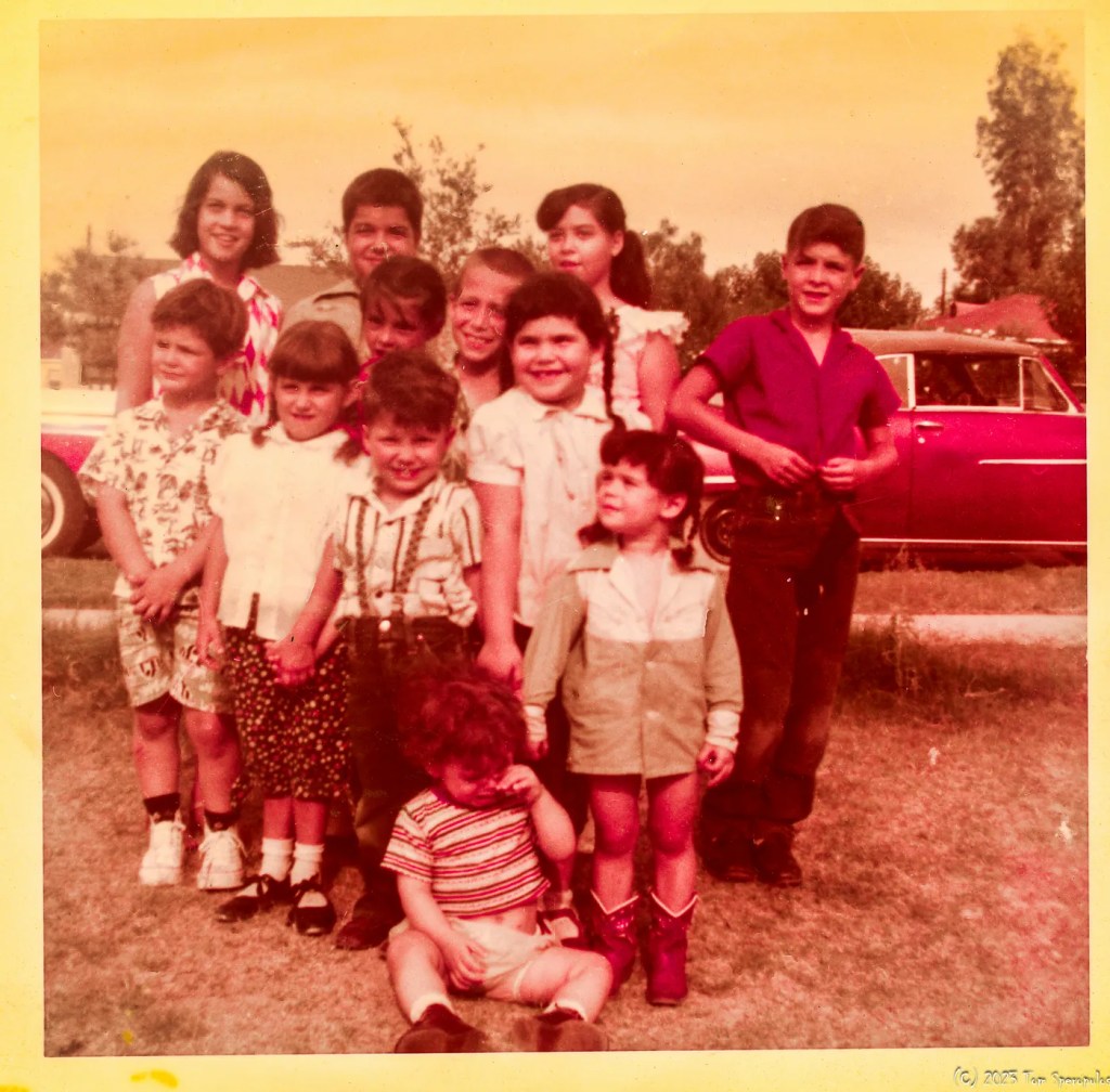At the corner of Seventh Avenue and Southern, there was a new Mormon Church. Once a year, the Mormons would become the talk of the neighborhood by burying an entire pig (not alive) in a deep, covered fire pit, filled with hot coals, in the church parking lot. After it cooked for twenty-four hours, they held a Hawaiian Luau for their members complete with Hawaiian shirts, muumuus, and leis. On the west side of Seventh Avenue was forty acres of farmland adjacent to an irrigation canal. The canal gave my friend Jesse and me many adventures when the canal’s water was at a low ebb. We waded into it ankle deep, hunting for crawdads and frogs with our homemade gigs (three-pronged spears), pocket knives, and BB guns. We imagined we were great hunters hacking our way through the dense foliage, lining the canal banks, looking for big game. In rural South Phoenix, I raised homing pigeons, and my sister had a horse.
